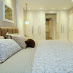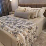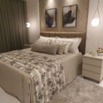 Descrição: Este quarto para uma jovem adolescente de 15 anos combina aconchego e sofisticação, utilizando materiais nobres para criar um ambiente elegante e moderno. Os móveis com acabamento em lacca e autobrilho adicionam um toque refinado, enquanto o papel de parede complementa o design, trazendo textura e personalidade ao espaço. O enxoval de cama, cuidadosamente escolhido, proporciona conforto e estilo, transformando o quarto em um refúgio acolhedor e encantador para a cliente.