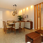 Projeto de um apartamento alugado, de frente para a praia da Barra da Tijuca. A premissa deste projeto foi a reforma da marcenaria existente e pequenas alterações de obra, como gesso e iluminação, além de decoração e ambientação para modernizar o imóvel.